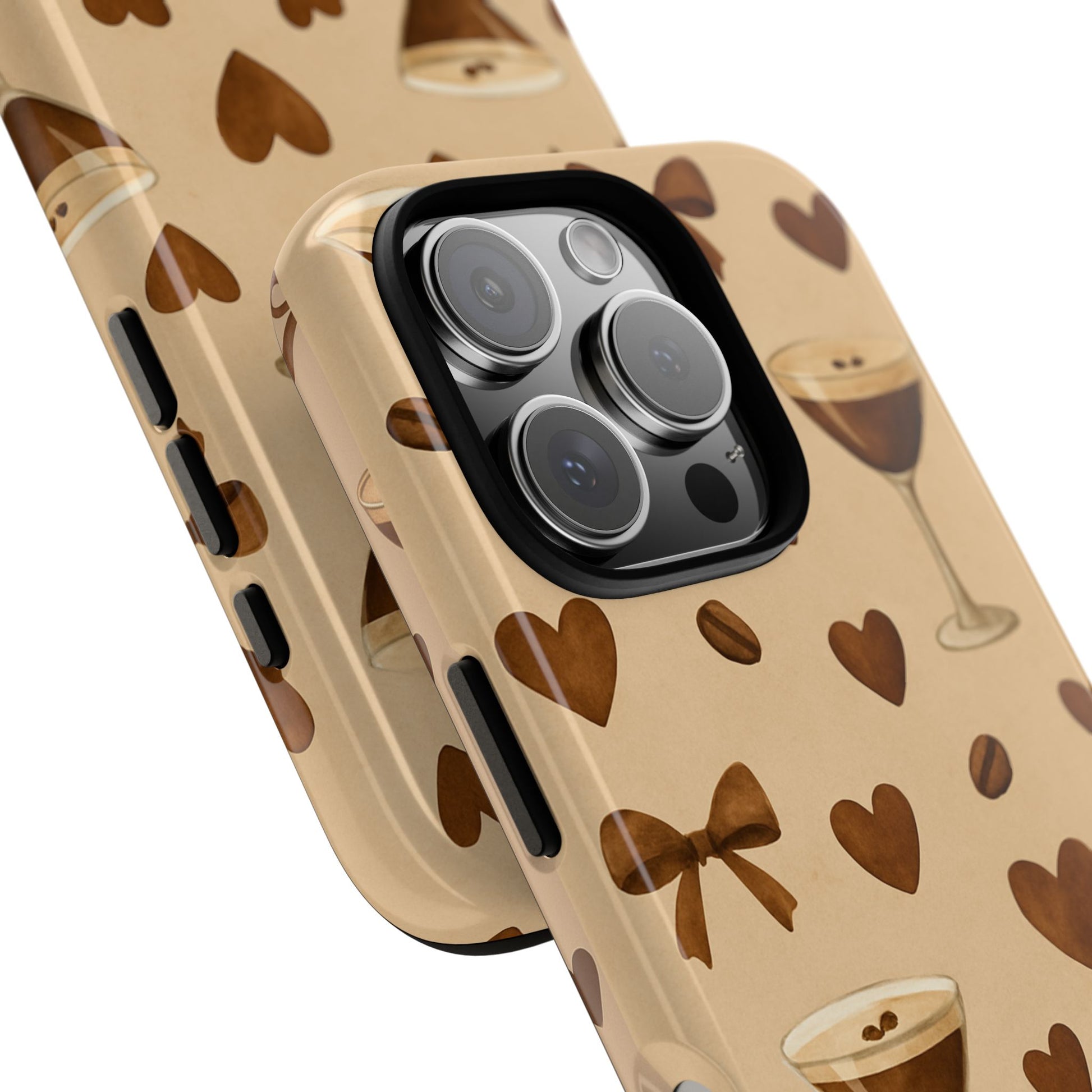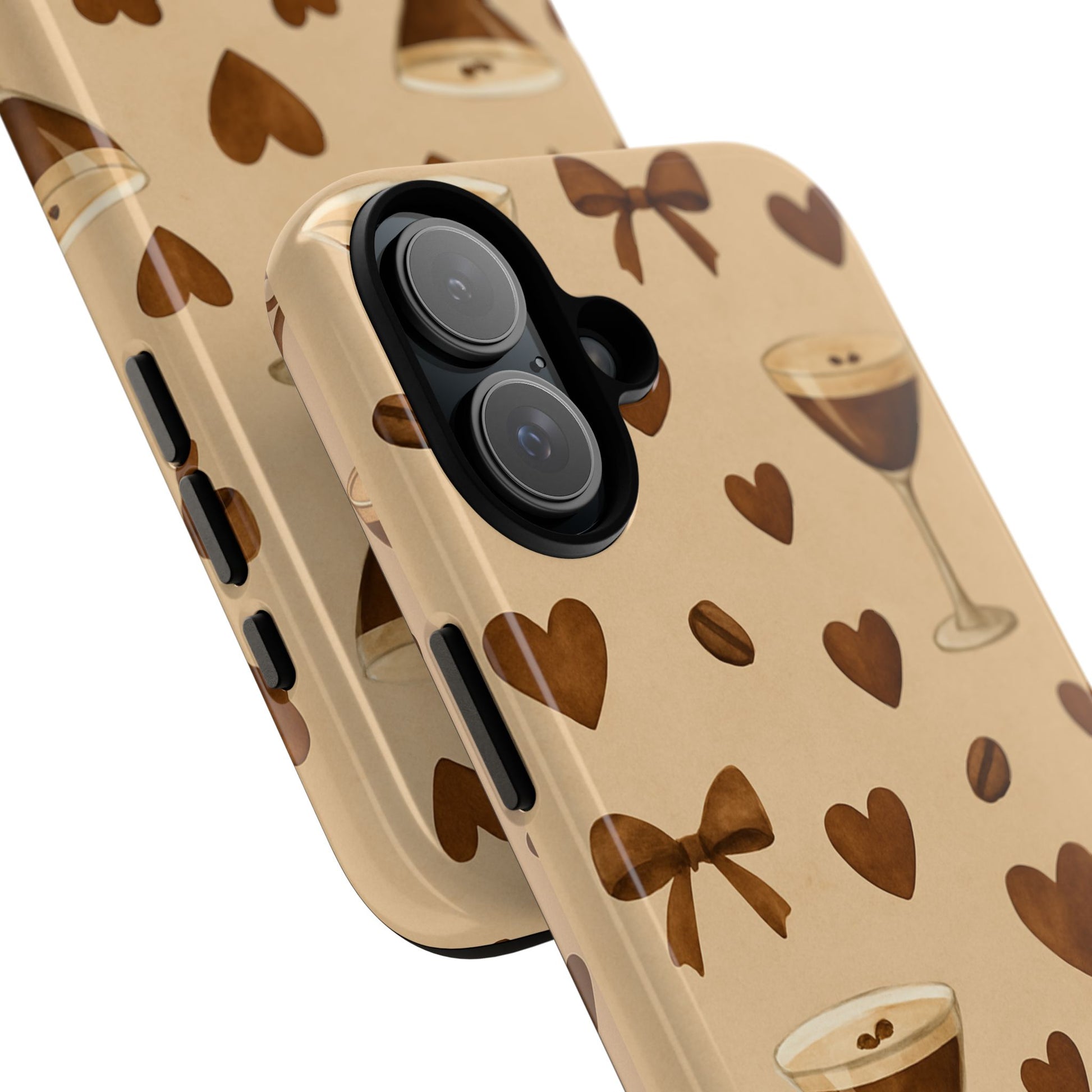 Introducing a stylish and protective phone case designed to make a statement. This phone case combines a unique blend of durability and art, showcasing a playful pattern of coffee drinks and hearts, perfect for coffee lovers and anyone who appreciates fun, aesthetic designs. It’s more than just protection; it’s an accessory that enhances your phone's look while providing robust defense against daily wear and tear.